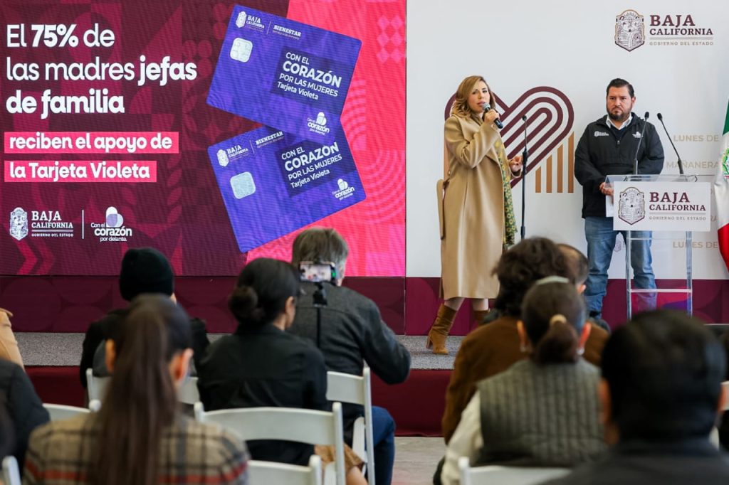 TIJUANA.- Para fortalecer el empoderamiento de las mujeres, la gobernadora Marina del Pilar Avila Olmeda destacó avances del programa Tarjeta Violeta, que ya beneficia al 75 por ciento de las madres autónomas de Baja California, a través de la Secretaría de Bienestar del Estado.