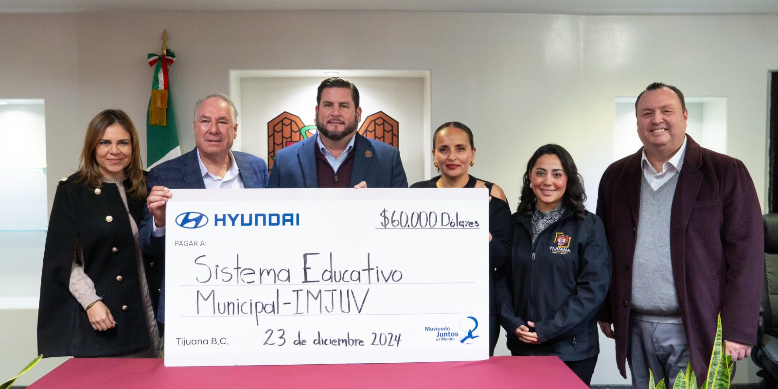 Tijuana, Baja California, a 29 de diciembre de 2024.- El Presidente Municipal de Tijuana, Ismael Burgueño Ruiz, recibió un donativo por parte de la empresa Hyundai, el cual será destinado a los programas y esquemas de apoyo de la Secretaría de Educación Municipal y el Instituto Municipal para la Juventud.