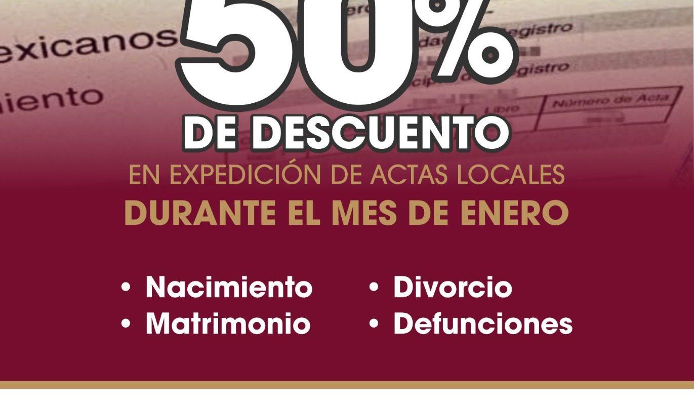 Para brindar facilidades y apoyar la economía de la ciudadanía que requiera actas de nacimiento, matrimonio, divorcio o defunción, el XXV Ayuntamiento de Tijuana que preside Presidente Municipal de Tijuana, Ismael Burgueño Ruiz, ofrece descuento en la tramitación de dichos documentos.