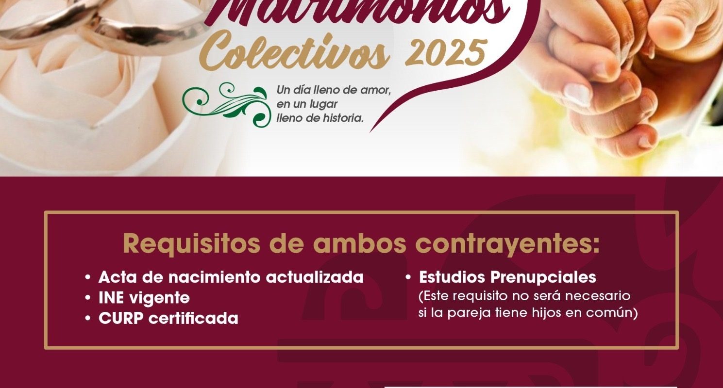 Los requisitos que deben cumplir las parejas sonː presentar acta de nacimiento actualizada de ambos contrayentes, identificaciones oficiales vigentes, CURP certificada, así como estudios prenupciales, mismo que se exenta en caso de tener hijos en común, en su lugar deberá acompañar el expediente con el acta de nacimiento de uno de sus hijos.