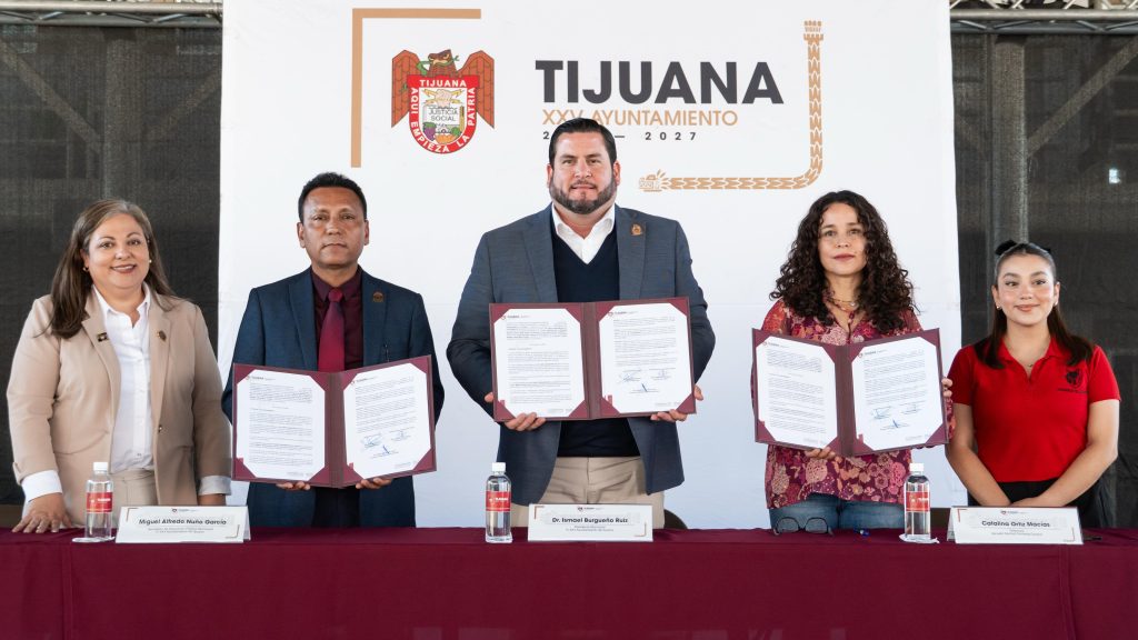 El presidente municipal, Ismael Burgueño Ruiz, firmó un convenio de colaboración con la Escuela Normal Fronteriza Tijuana (ENFT), a fin de impulsar acciones y programas que contribuyan al fortalecimiento profesional de los futuros docentes.