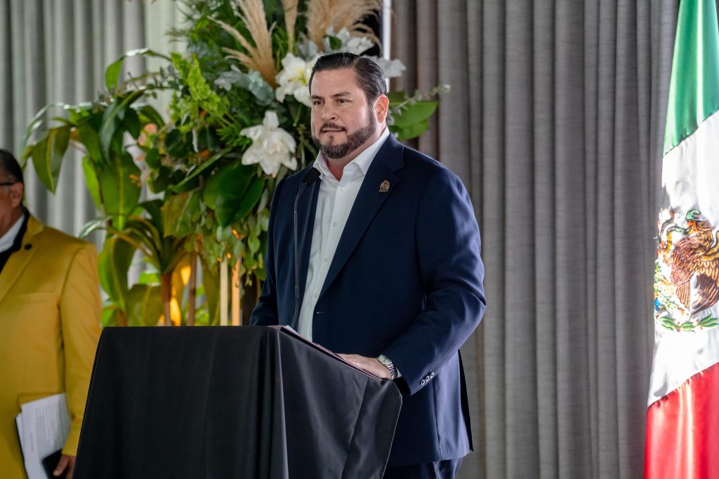 Héctor Jiménez Báez, coordinador Estatal de la Guardia Nacional en Baja California; Irán Leonardo Verdugo Contreras, secretario de Desarrollo Económico y Turismo del Ayuntamiento de Playas de Rosarito; así como Julián Palombo Saucedo, presidente del periodo 2022 -2024 de la CANACO, entre otras autoridades.