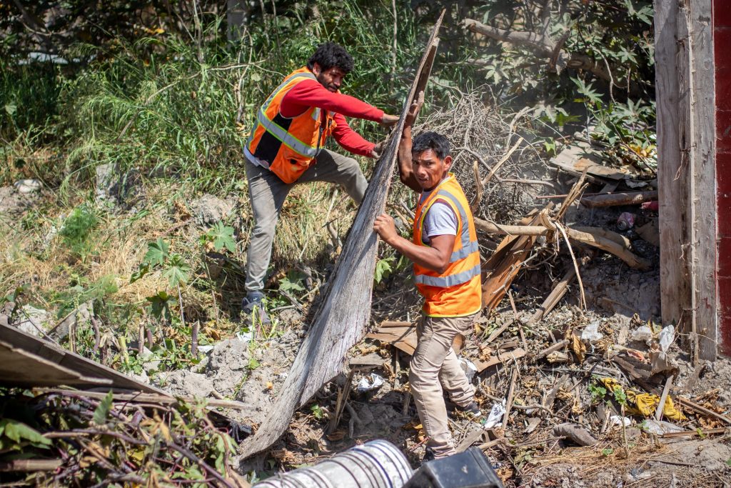 Los trabajos en esta zona, a cargo de la Secretaría de Desarrollo Territorial Urbano y Ambiental, consisten en 500 metros cuadrados de limpieza, el retiro de dos toneladas de basura pesada, madera, maleza, ramas, deshierbe y azolve de arroyo pluvial, así como 3 mil metros cuadrados de motoconformado.
