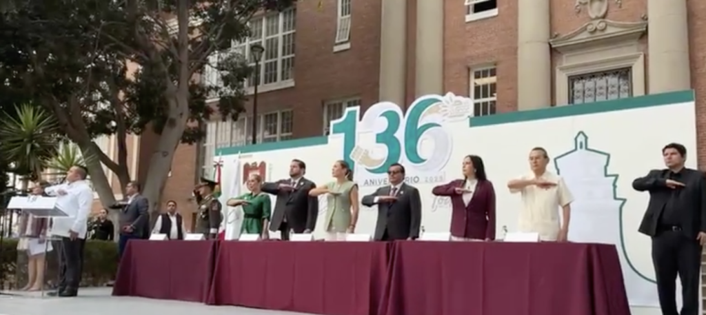 En el marco de los festejos por el 136 aniversario de la fundación de Tijuana, la síndico procuradora Teresita Balderas acompañó al presidente municipal Ismael Burgueño Ruiz durante el acto cívico realizado en la histórica Casa de la Cultura de la ciudad.