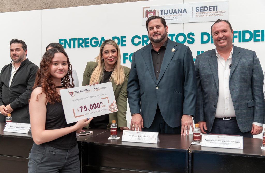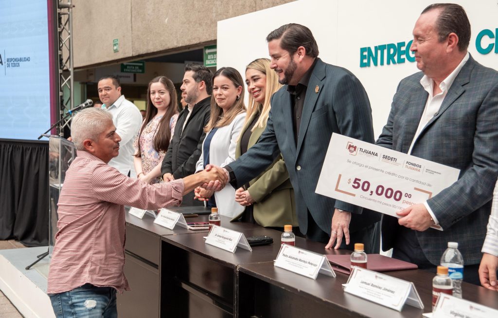 Con la finalidad de generar bienestar en las familias tijuanenses, así como impulsar el desarrollo económico de la ciudad, el presidente municipal, Ismael Burgueño Ruiz, encabezó, en Palacio Municipal, la ceremonia de entrega de 484 créditos del Fideicomiso Fondos Tijuana, que representan una inversión superior a los 23 millones de pesos.