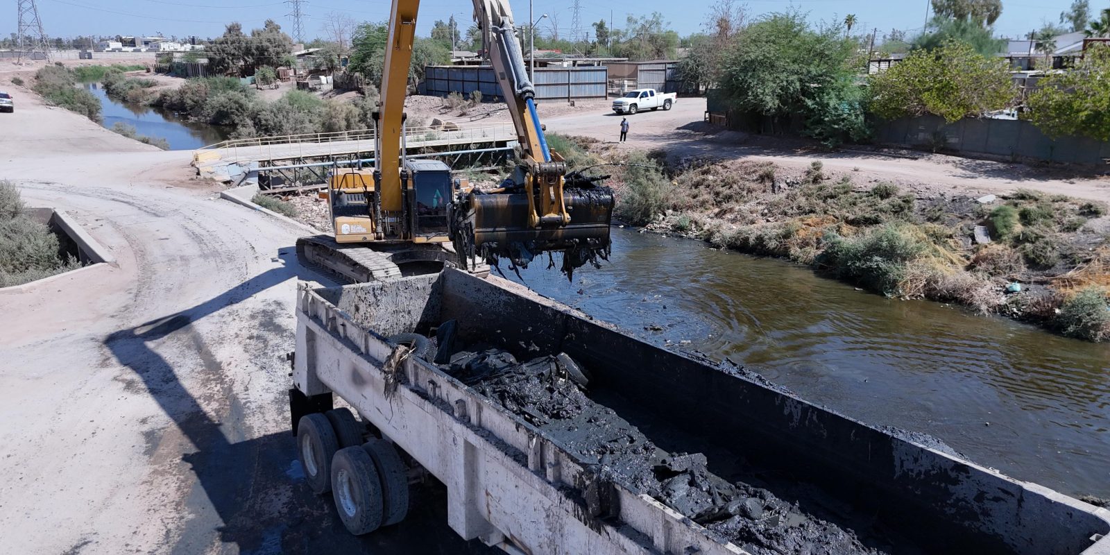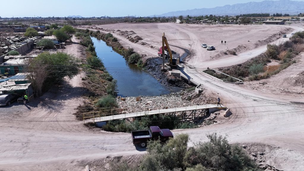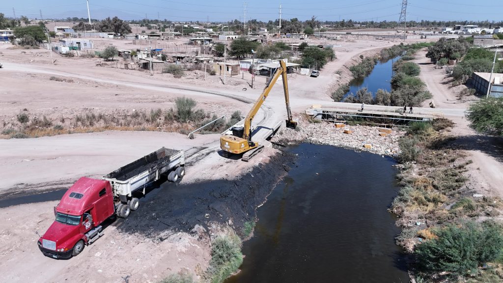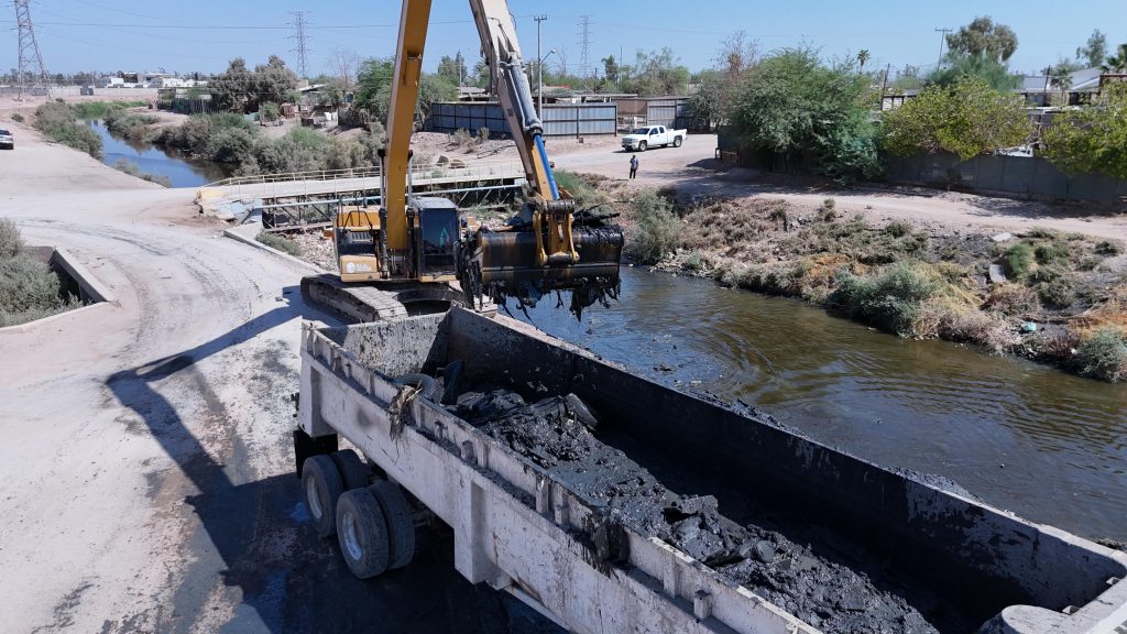 Mexicali. – Como parte de sus trabajos permanentes de limpieza y mantenimiento de la infraestructura hidráulica, la Comisión Estatal de Servicios Públicos de Mexicali (CESPM) realizó la limpieza del Dren Colector del Norte, en el tramo correspondiente a la calle Limoneros.