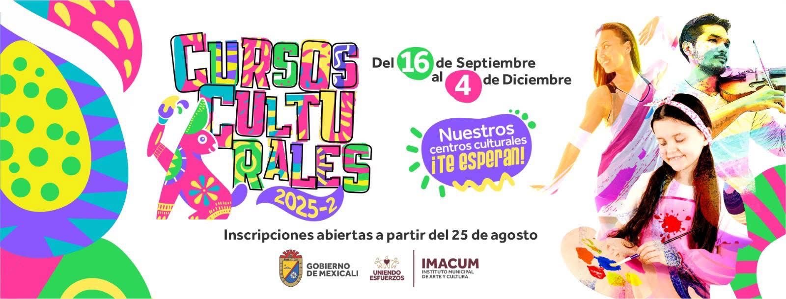 El Gobierno de Mexicali, a través del Instituto Municipal de Arte y Cultura (IMACUM), anuncia la apertura de su oferta de cursos culturales para el periodo 2025-2, esta temporada de aprendizaje y creatividad se llevará a cabo del 16 de septiembre al 4 de diciembre en diversas Casas de la Cultura, tanto en la ciudad como en el Valle de Mexicali.