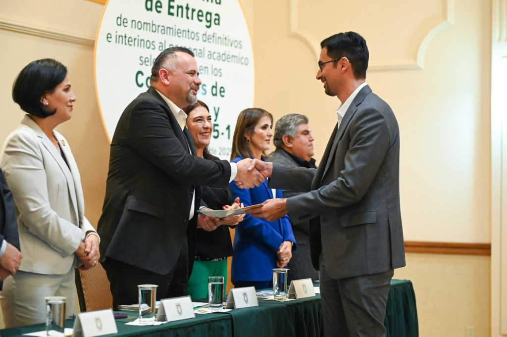 El rector subrayó que el reconocimiento no solo responde a un compromiso administrativo, sino que representa la certeza laboral que profesoras y profesores han conquistado con su dedicación. “Reconocer su labor a través de la entrega de plazas académicas es honrar la manera en que día a día transmiten conocimiento, valores y experiencias que trascienden más allá del aula”, les dijo a las personas que recibieron sus plazas.