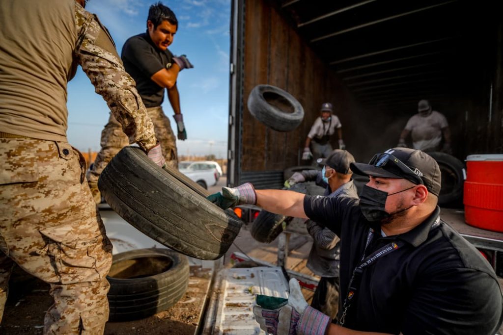 La alcaldesa de Mexicali Norma Bustamante dirigió una jornada de limpieza y recolección de llantas en un terreno baldío en Parajes del Oriente. La brigada, ubicada entre la avenida Cascada de la Balsa y la calle de Armas, en coordinación con el Centro de Reciclaje Integral de Llantas (CRILL) se logró recolectar cerca de 2,000 llantas, contribuyendo a mejorar el bienestar y seguridad de la comunidad.