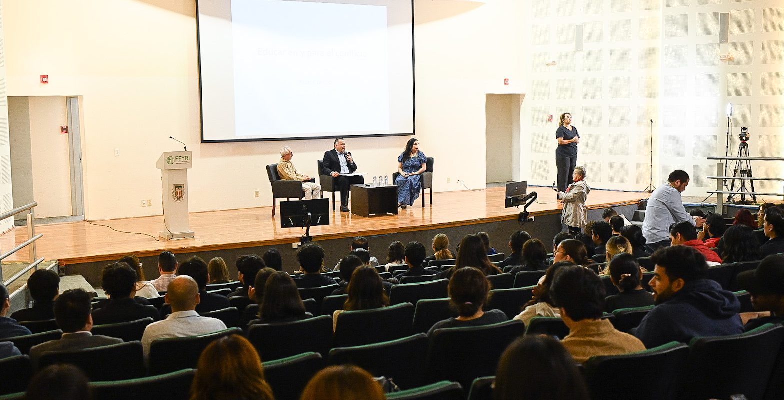 La Universidad Autónoma de Baja California (UABC) realizó la conferencia magistral “Educar en y para el conflicto”, impartida por el especialista en cultura de paz, Francisco Cascón Soriano, en el auditorio de la Facultad de Economía y Relaciones Internacionales (FEyRI).