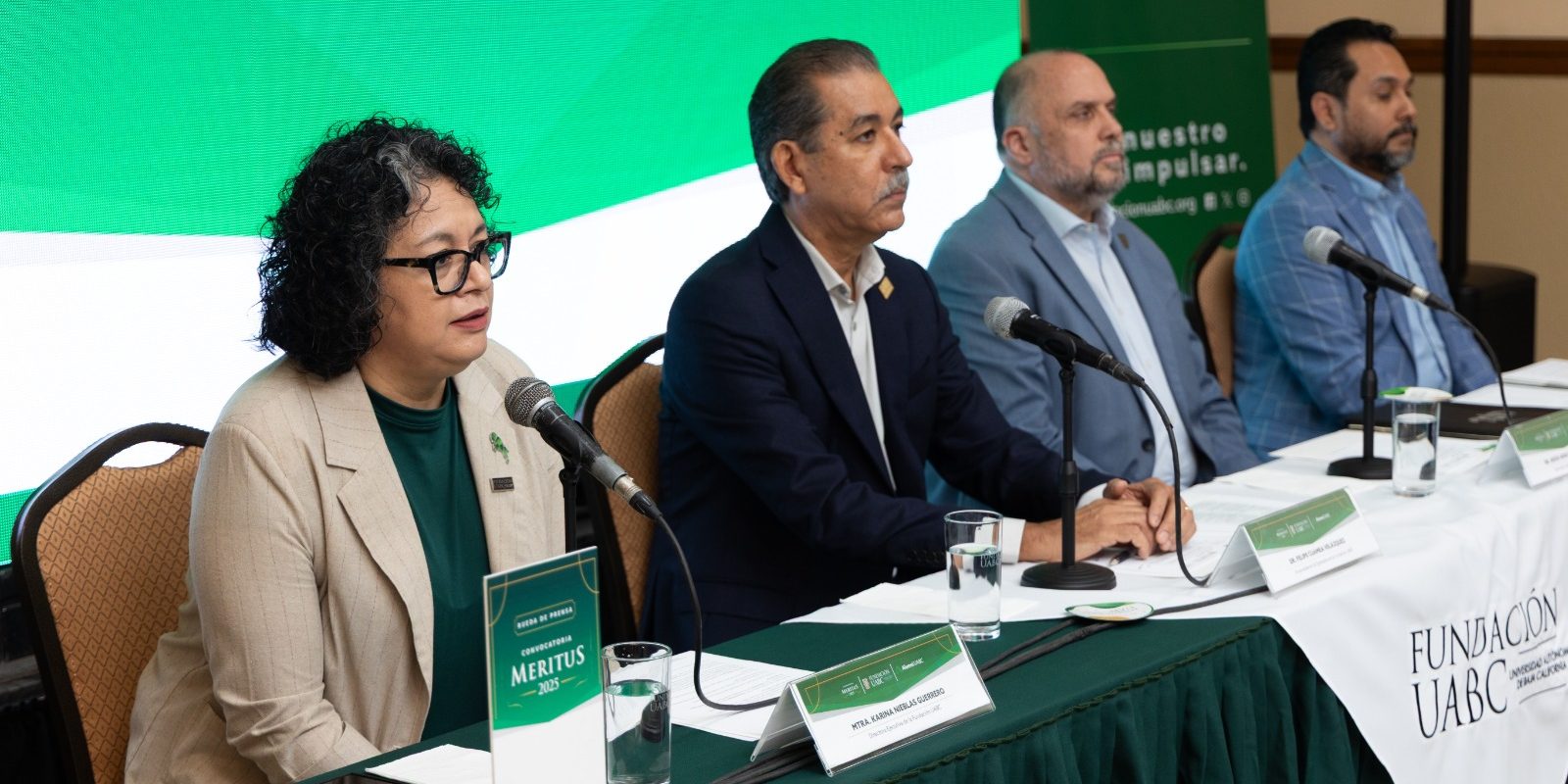 Por su parte, la directora ejecutiva de la Fundación UABC, maestra Karina Nieblas Guerrero, expresó que el galardón Méritus es un motivo de celebración al reconocer el impacto de la comunidad de personas egresadas en la región y en el mundo, destacando que “hemos visto cómo nuestros egresados están por todo el mundo haciendo cosas de impacto, cosas de bien, poniendo en alto el orgullo de ser cimarrones”. Mencionó que esta convocatoria, impulsada en coordinación con la UABC, busca visibilizar trayectorias con base en los valores universitarios.