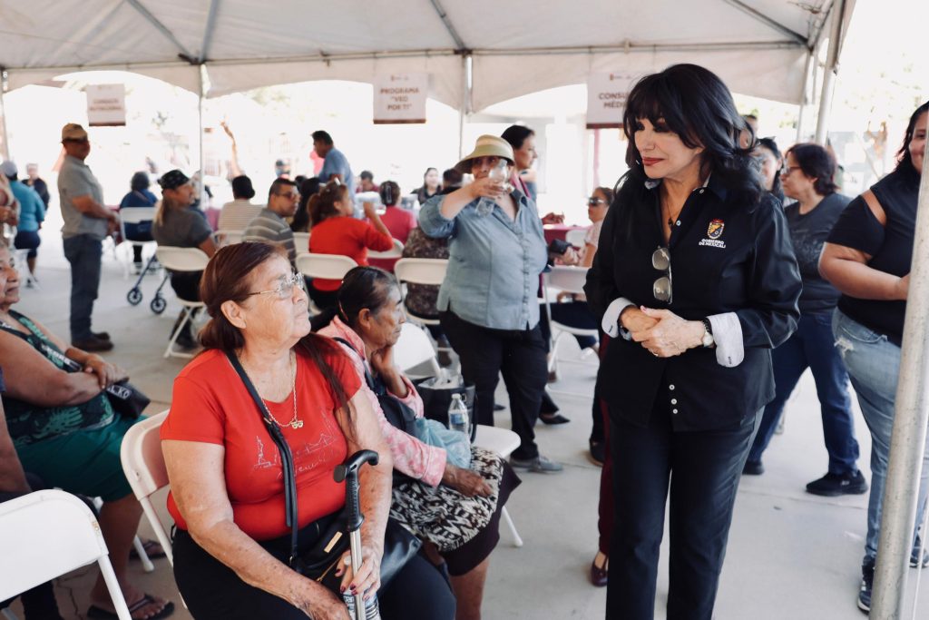 La alcaldesa de Mexicali, Norma Bustamante, junto a la presidenta del Patronato DIF Municipal, Karla Edith González, visitaron la comunidad de Valle Dorado.