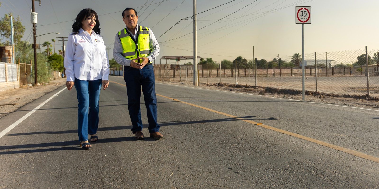 La presidenta municipal Norma Bustamante anunció que se rehabilitaron más de 6,400 metros cuadrados de la calle 27 de Enero, en el Ejido Islas Agrarias “A”