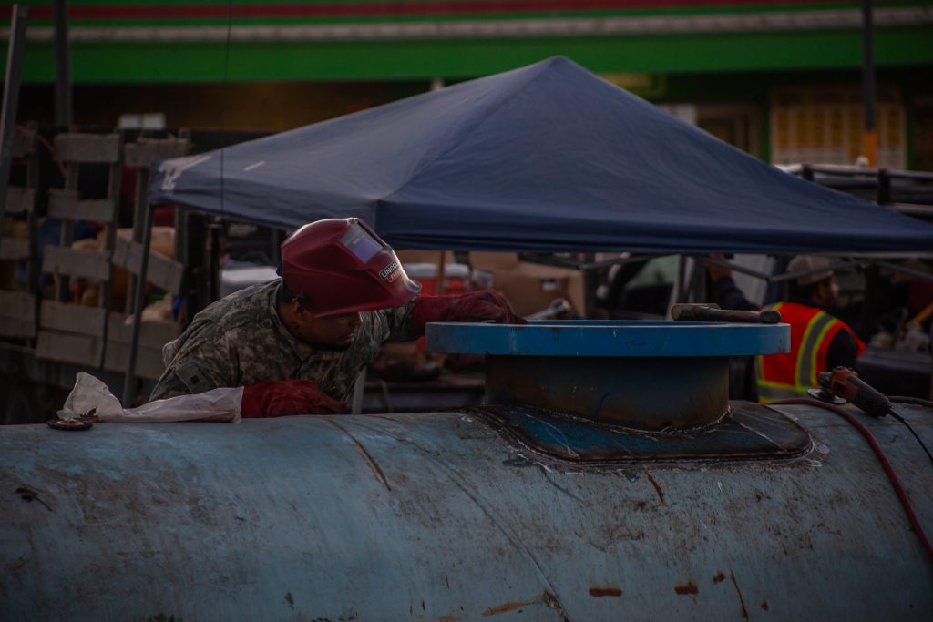 Maquinaria y equipo: 21 unidades, entre excavadoras, retroexcavadoras para labores de limpieza, una grúa de 30 toneladas, soldadoras, tecles, eslingas, gatos hidráulicos, vehículos utilitarios, equipo de corte y camiones de volteo.