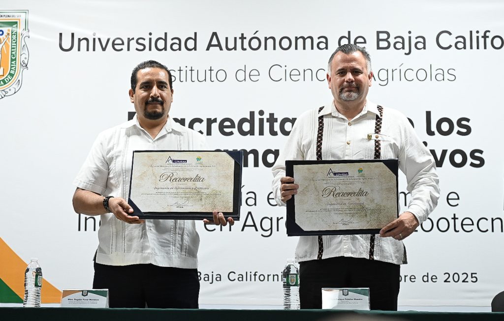 La Universidad Autónoma de Baja California (UABC) reafirma su compromiso con la excelencia académica tras la reacreditación de tres de sus programas educativos: la Licenciatura en Derecho, impartida en la Facultad de Derecho Mexicali, y las carreras de Ingeniería en Agronomía e Ingeniería en Agronomía y Zootecnia, del Instituto de Ciencias Agrícolas (ICA).