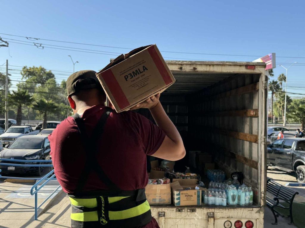 Posteriormente, en los días 29 y 30 de octubre, en colaboración con el Sistema DIF Estatal, se reunieron 6 y 2.5 toneladas respectivamente, por lo que se implementó la logística con el envío de camiones de carga pesada que trasladaron los recursos directamente al municipio de Mexicali.
