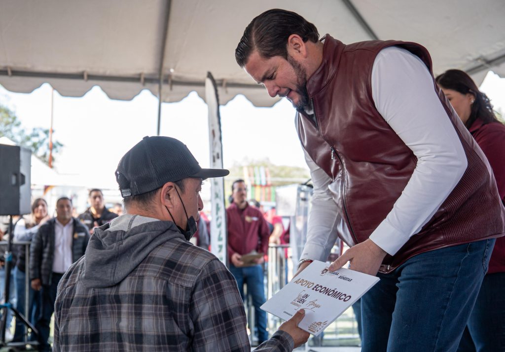 Acompañaron al alcalde la coordinadora de Delegaciones, Adriana Barrera Hernández; la delegada de La Presa Abelardo L. Rodríguez, Graciela Ponce Velázquez, así como funcionarias, funcionarios municipales y personas beneficiadas.