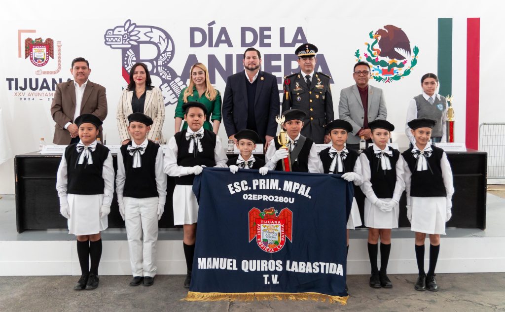 El presidente municipal de Tijuana, Ismael Burgueño Ruiz, encabezó la ceremonia cívica en conmemoración del Día de la Bandera, acto que representa la identidad, la historia y la soberanía de México.