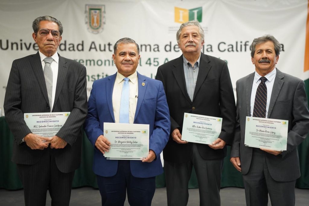 Del mismo modo, el rector resaltó que el mayor valor del Instituto de Ingeniería no radica únicamente en su infraestructura o equipamiento científico, sino en su capital humano. “Lo más valioso no está en los edificios, está aquí, en las personas”, enfatizó, al reconocer a estudiantes, personal académico, administrativo y egresados como la principal fortaleza de esta comunidad. Concluyó que celebrar este aniversario implica no sólo orgullo por el camino recorrido, sino también la responsabilidad de renovar el compromiso con la innovación, el sentido humano y el servicio a la sociedad, al señalar: “Que estos 45 años sean una oportunidad para reafirmar nuestro compromiso con el futuro de nuestro Estado, de nuestro país y de nuestro planeta”.