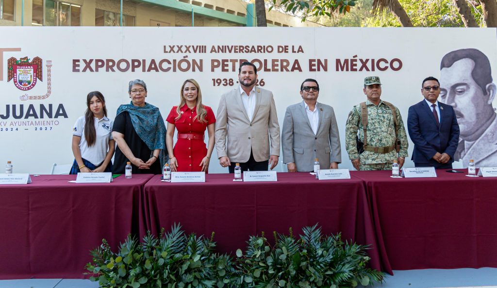 El presidente municipal de Tijuana, Ismael Burgueño Ruiz, encabezó la ceremonia conmemorativa por el 88 Aniversario de la Expropiación Petrolera, decretada por el presidente Lázaro Cárdenas del Río, en 1938; un hecho de relevancia para las y los mexicanos, que sentó las bases de la independencia energética.