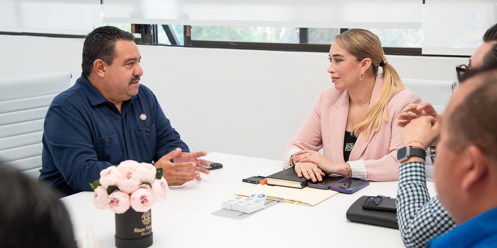 La síndica procuradora del Ayuntamiento de Tijuana, Teresita Balderas, sostuvo un encuentro de trabajo con el secretario general de la Confederación de Trabajadores de México (CTM), Baltazar Gómez, acompañado por integrantes de dicha organización, con el objetivo de fortalecer la atención y los procesos relacionados con el sector transporte.