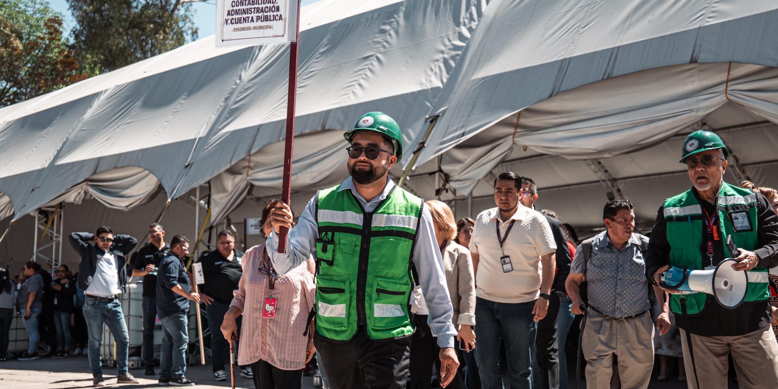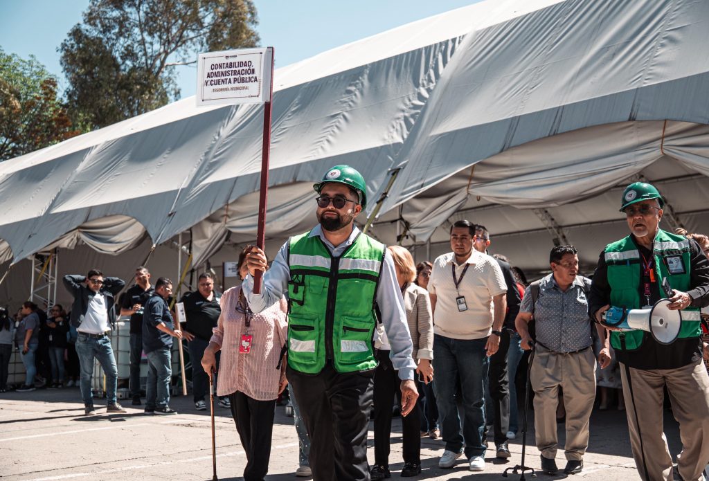 Durante la actividad, en la que también participaron funcionarios como la Síndica Procuradora, Teresita Balderas Beltrán, el personal se concentró en los puntos de evacuación previamente establecidos.