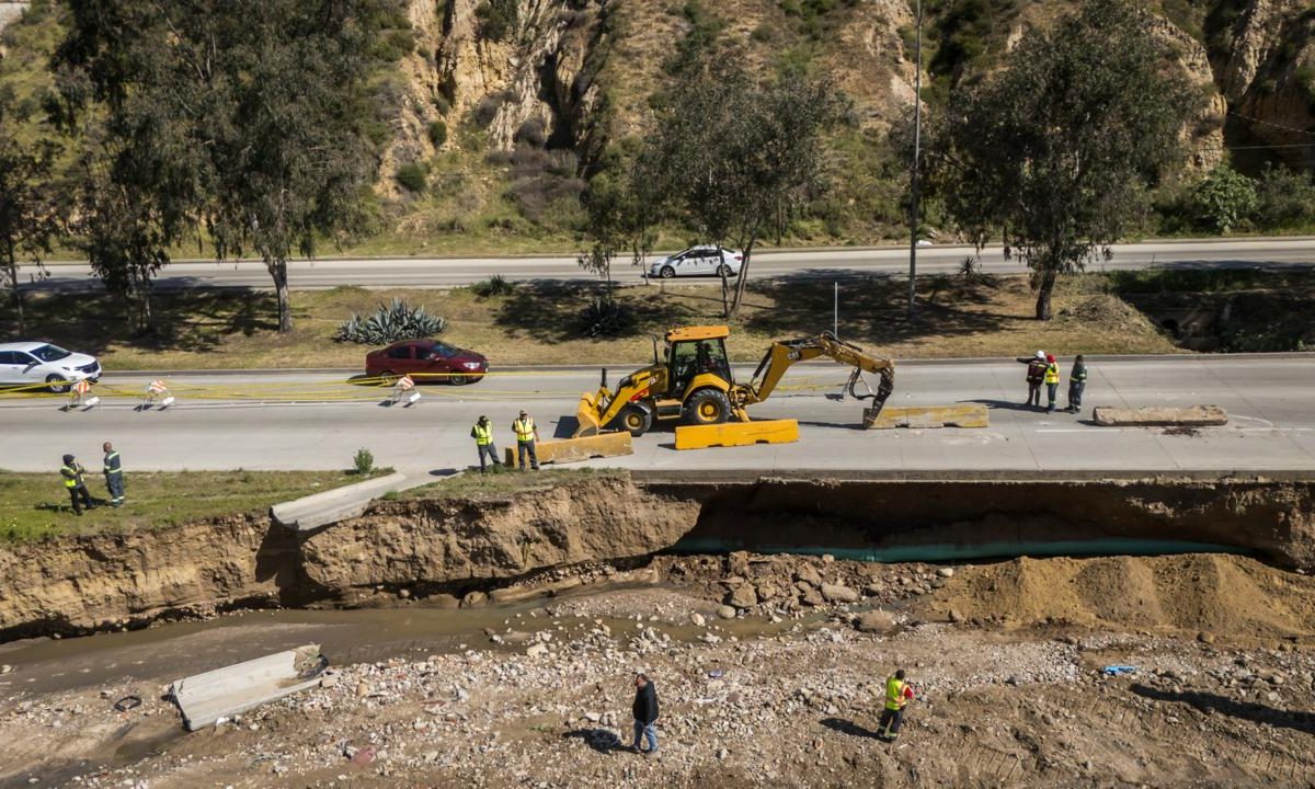 Trabajos de reparación se realizan en el carril de acotamiento del Libramiento Rosas Magallón Sur, a la altura del Puente …