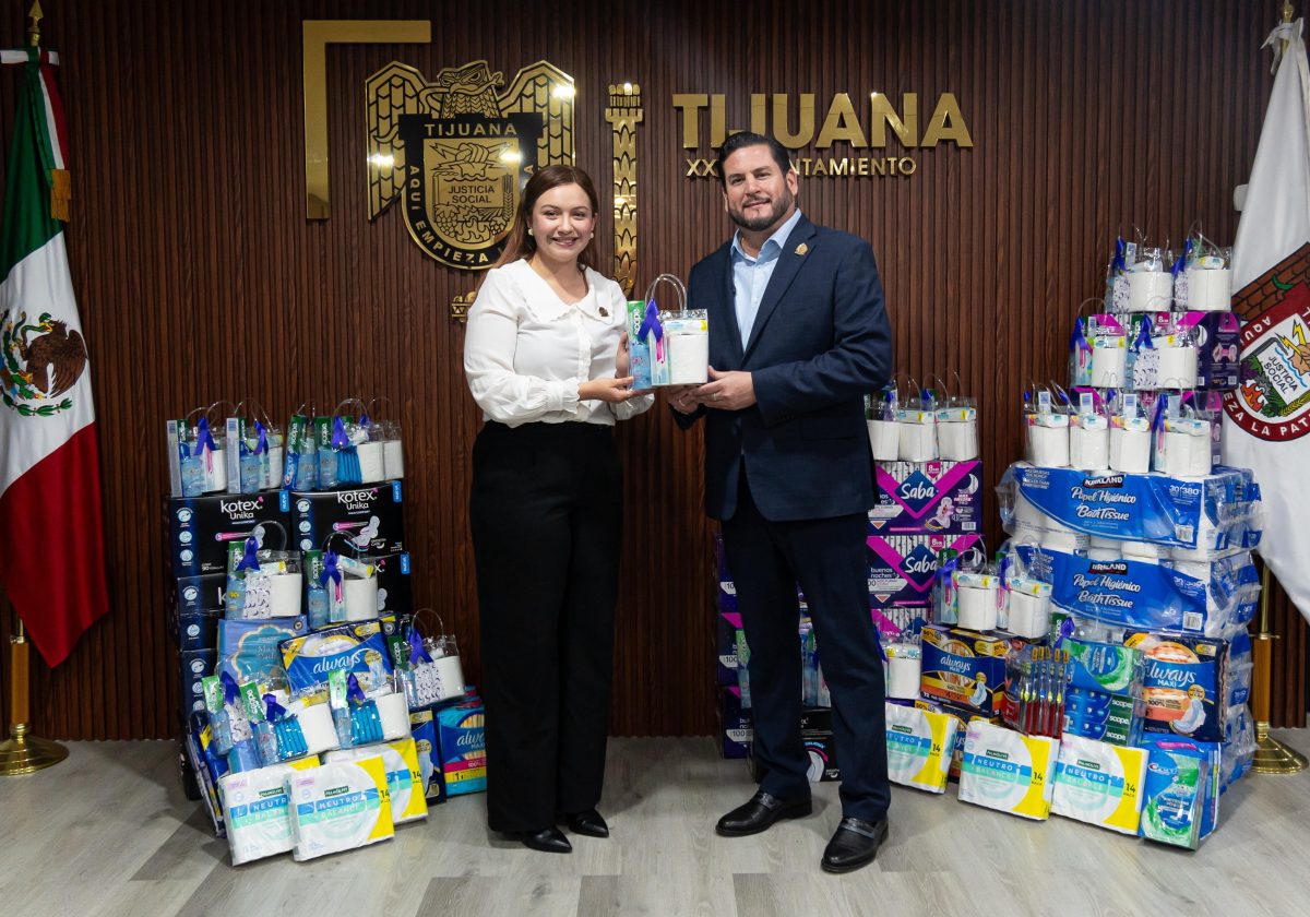 El presidente municipal de Tijuana, Ismael Burgueño Ruiz, hizo entrega de un donativo de productos de higiene femenina, a la …