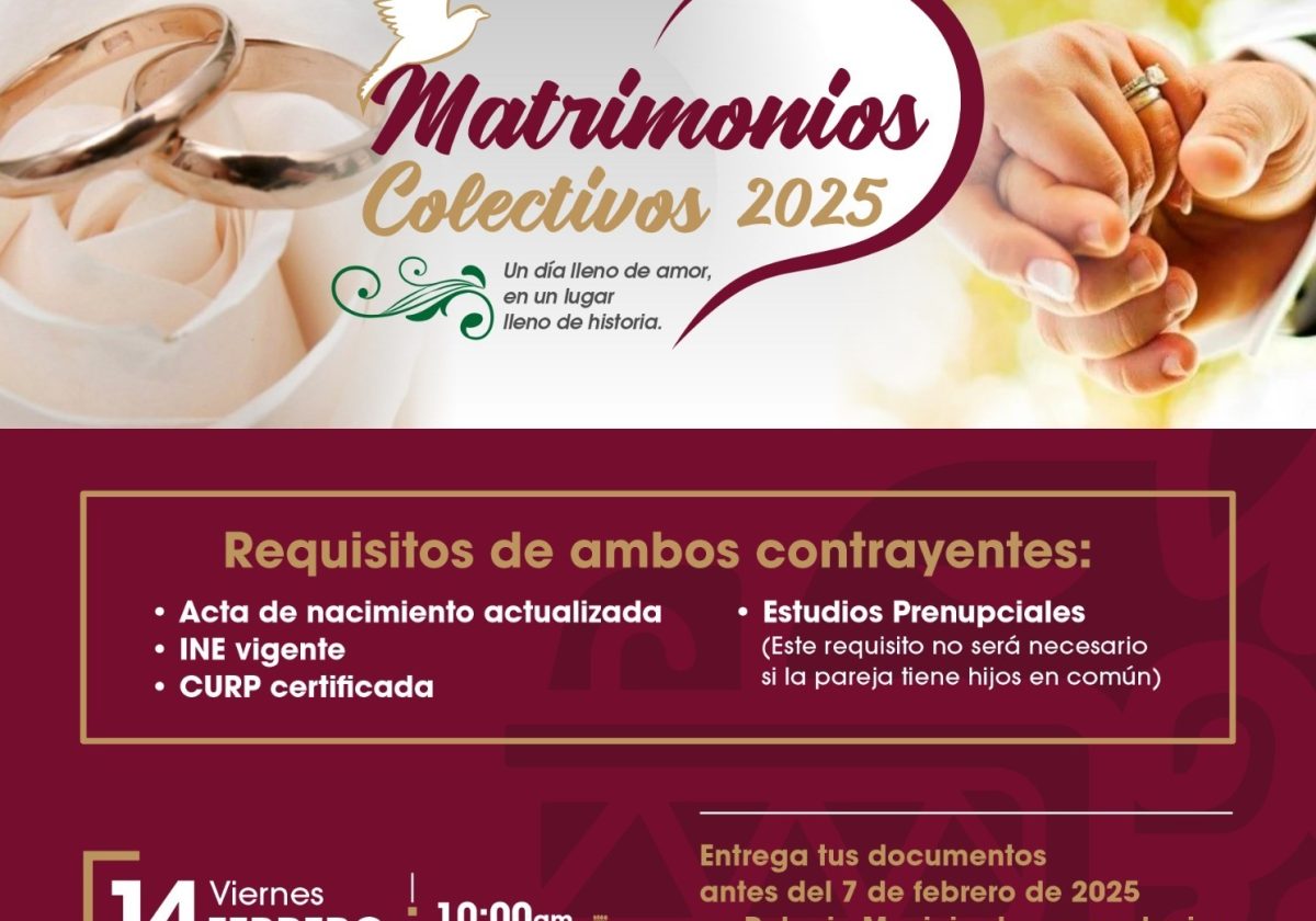 Parejas podrán contraer matrimonio civil, de manera gratuita, el próximo 14 de febrero, en el marco de una celebración denominada …